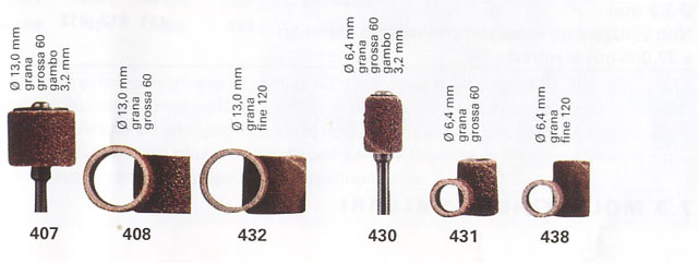 Vanno usati con il mandrino 402 (lo stesso dei dischi da taglio).